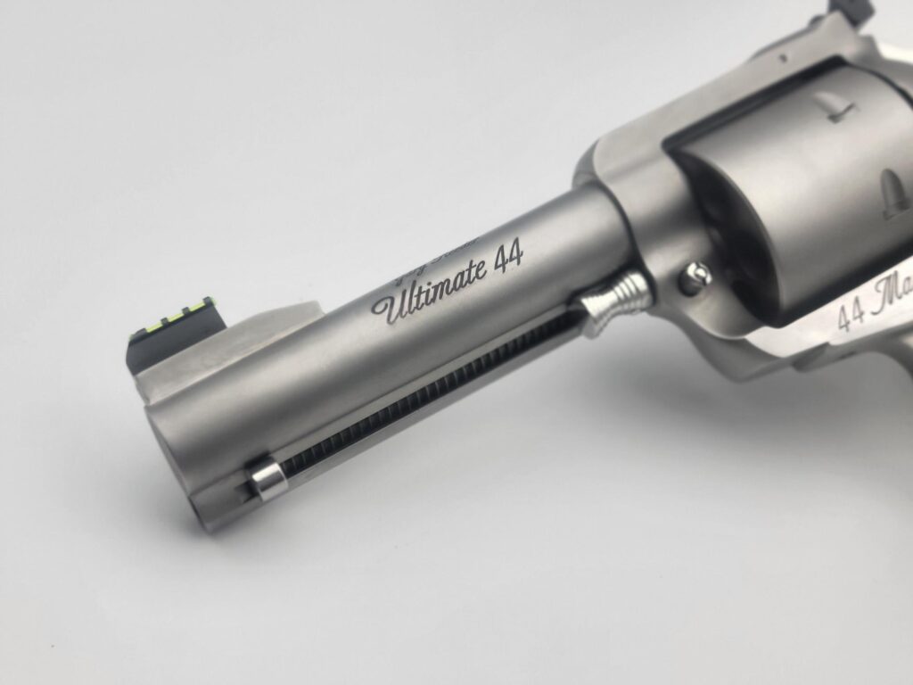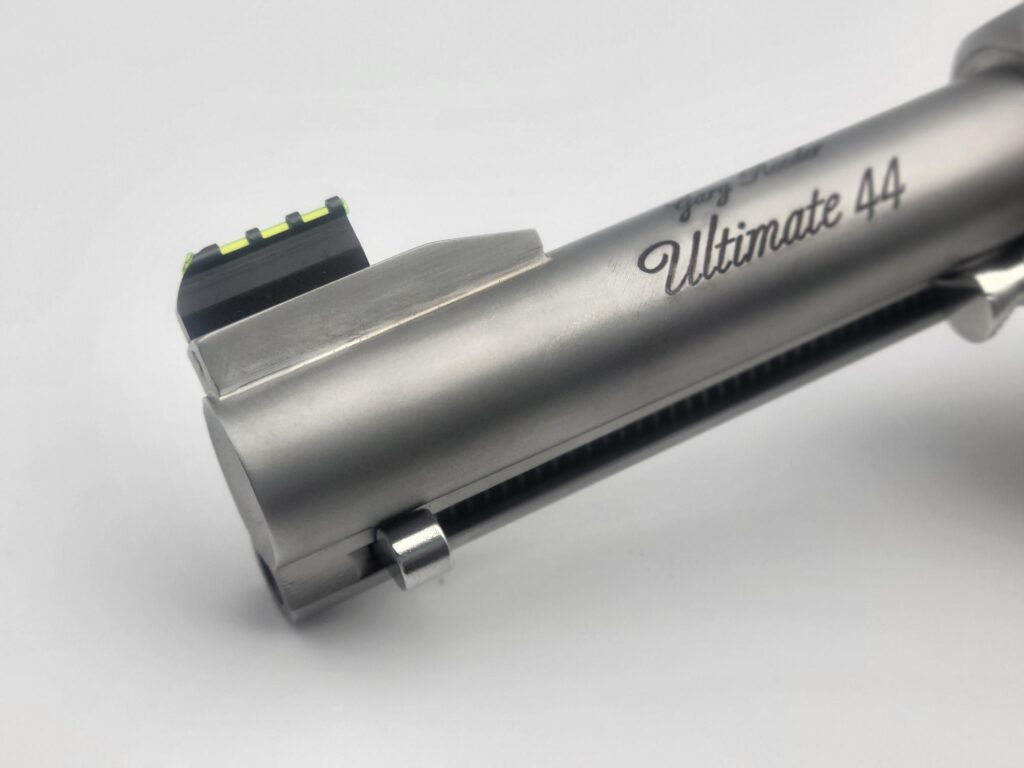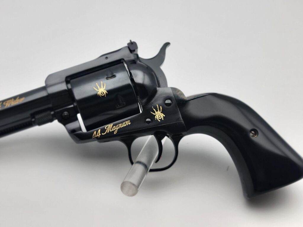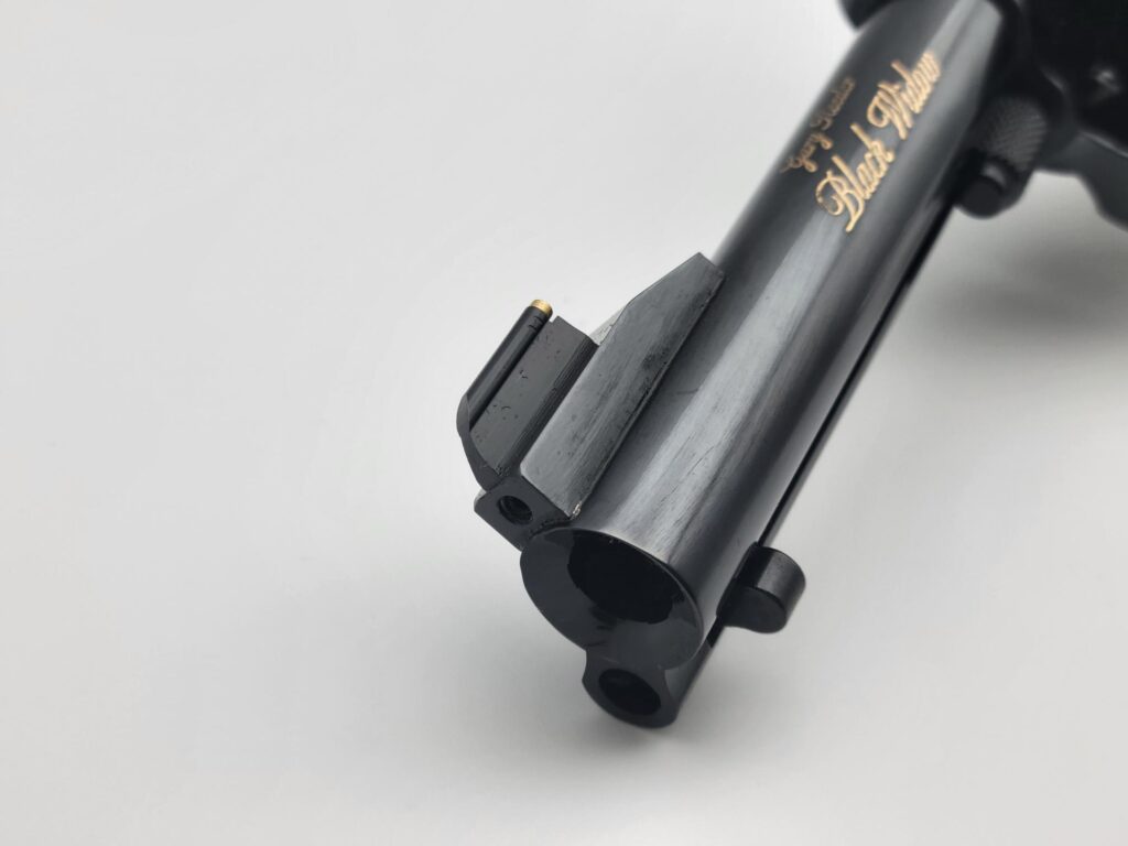 This Black Widow has a 4 5/8" barrel featuring a gold bead sight and is chambered in 44 magnum.